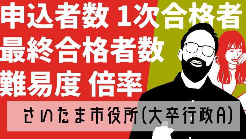 2021年度のさいたま市役所(大卒程度・行政事務A)採用試験の申込者数は1097人、第1次試験合格者数は316人、最終合格者数は153人、倍率は7.2倍でした。