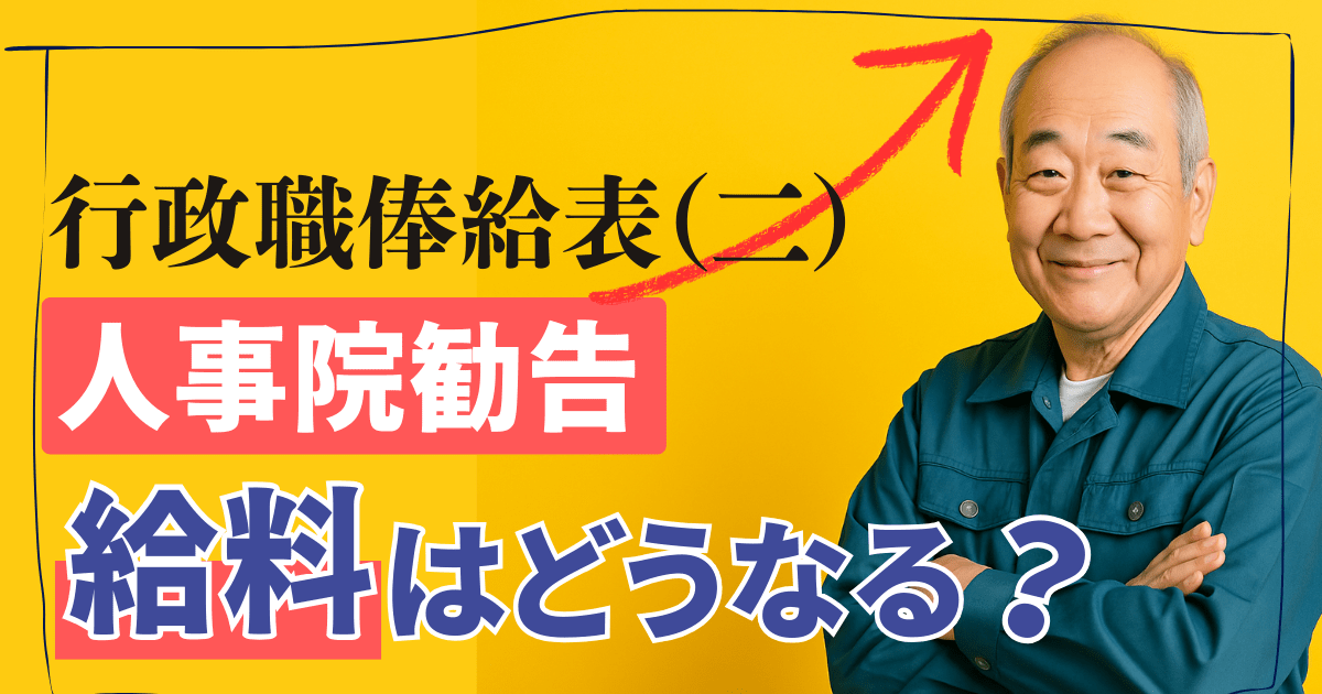 このページでは、行政職俸給表(二)をもとに、実際にどれくらい月給がアップするのかを、勧告前後で比較しながらわかりやすく表示します。ベースアップ額が気になる方はぜひご覧ください。