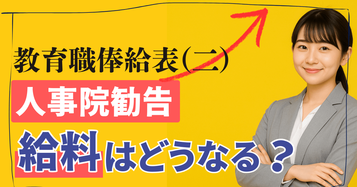 このページでは、教育職俸給表(二)をもとに、実際にどれくらい月給がアップするのかを、勧告前後で比較しながらわかりやすく表示します。ベースアップ額が気になる方はぜひご覧ください。