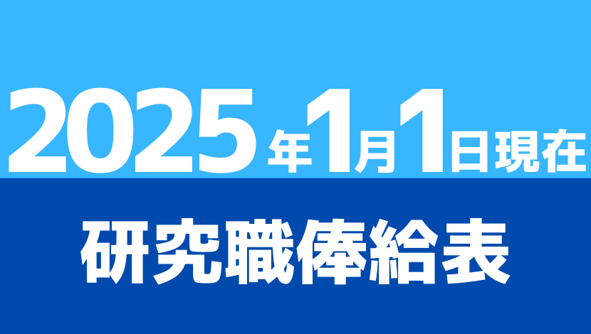 2025(令和7)年1月1日現在の国家公務員の研究職俸給表は以下のとおりです。