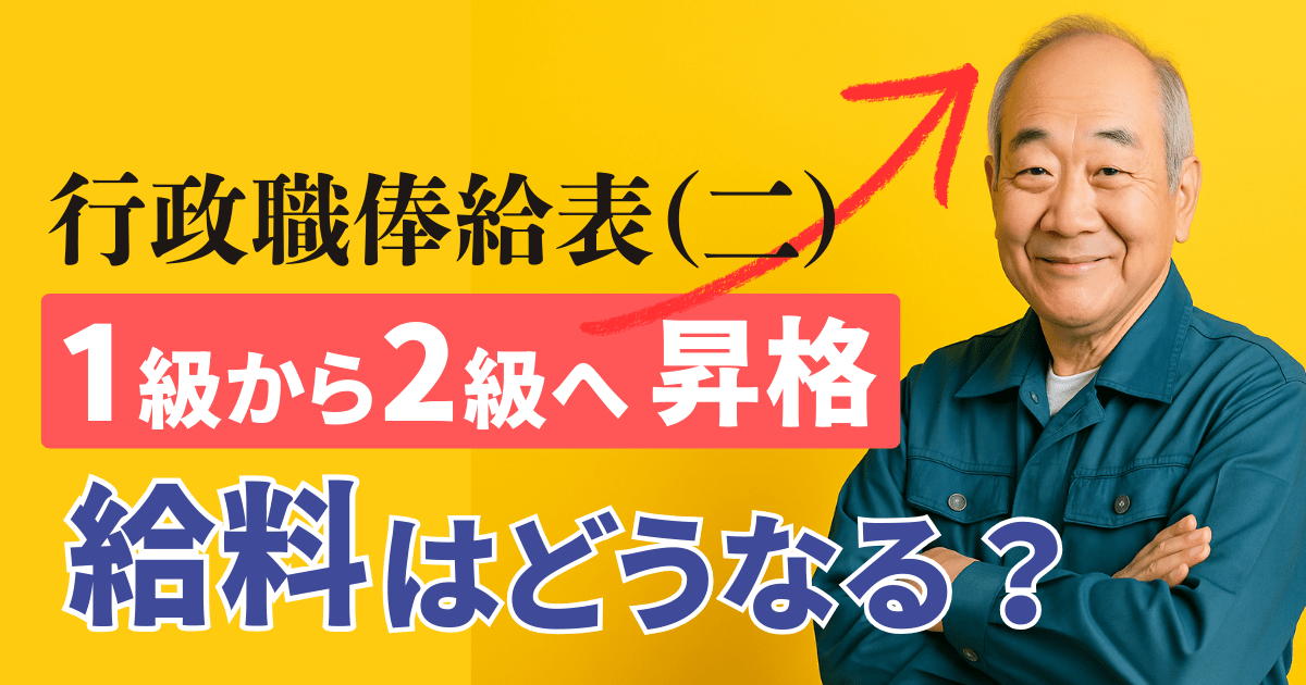 以下に、行政職俸給表(二) 適用の国家公務員が 1級 から 2級 に昇格した際の、対応する号俸の一覧表を掲載します。