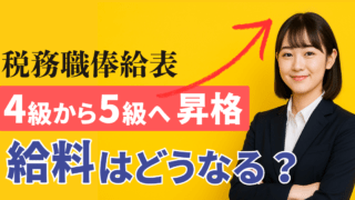以下に、税務職俸給表 適用の国家公務員が 3級 から 4級 に昇格した際の、対応する号俸の一覧表を掲載します。