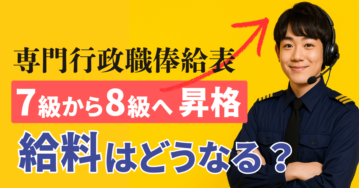以下に、専門行政職俸給表 適用の国家公務員が 7級 から 8級 に昇格した際の、対応する号俸の一覧表を掲載します。
