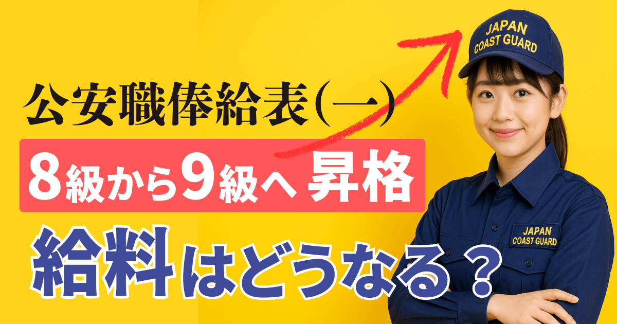 以下に、公安職俸給表(一) 適用の国家公務員が 8級 から 9級 に昇格した際の、対応する号俸の一覧表を掲載します。