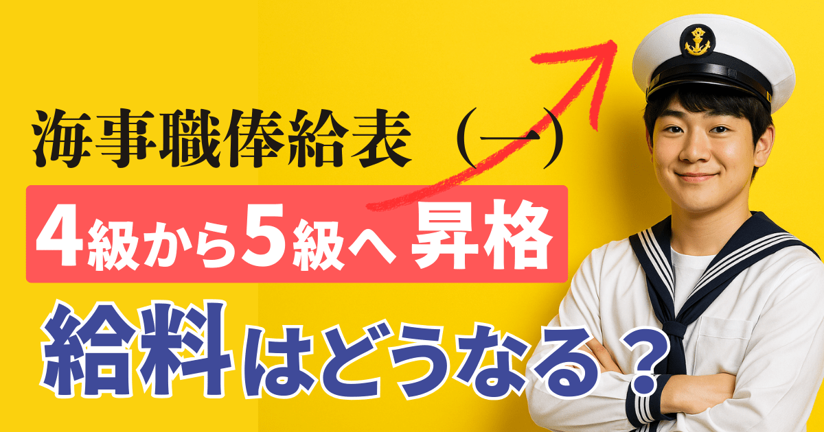 以下に、海事職俸給表(一) 適用の国家公務員が 4級 から 5級 に昇格した際の、対応する号俸の一覧表を掲載します。