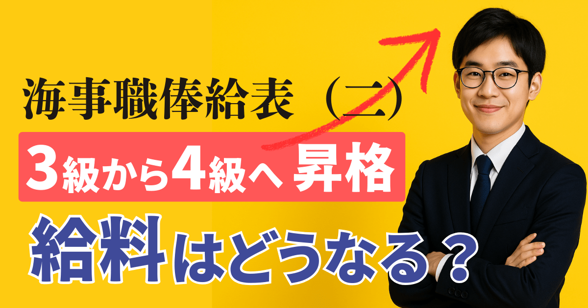 以下に、海事職俸給表(二) 適用の国家公務員が 3級 から 4級 に昇格した際の、対応する号俸の一覧表を掲載します。