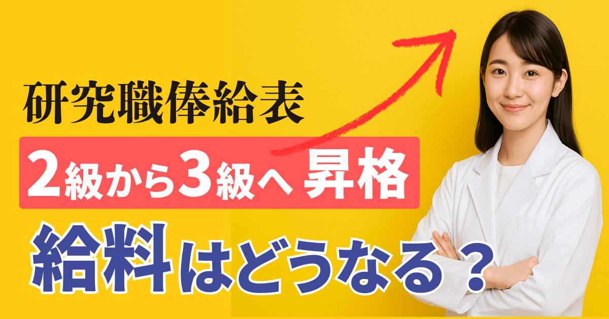 以下に、研究職俸給表 適用の国家公務員が 2級 から 3級 に昇格した際の、対応する号俸の一覧表を掲載します。