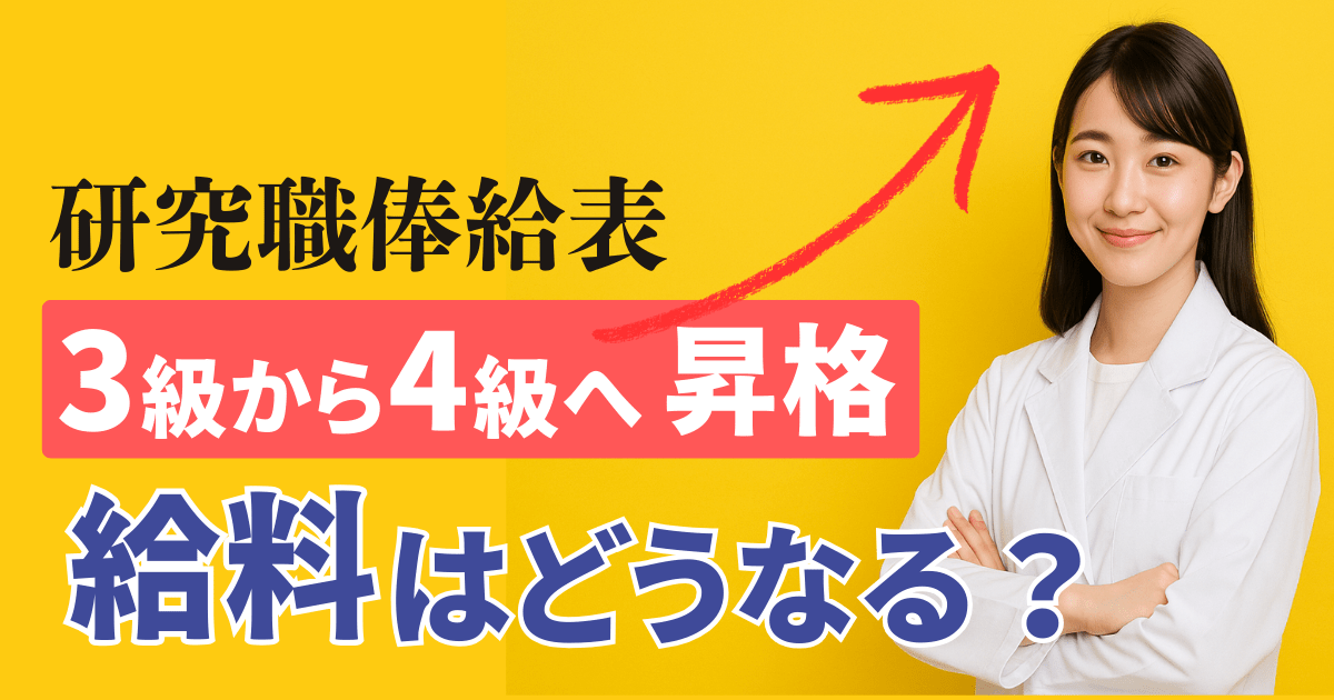以下に、研究職俸給表 適用の国家公務員が 3級 から 4級 に昇格した際の、対応する号俸の一覧表を掲載します。
