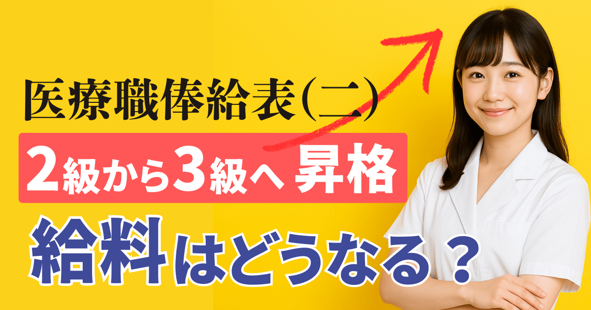 以下に、医療職俸給表(二) 適用の国家公務員が 2級 から 3級 に昇格した際の、対応する号俸の一覧表を掲載します。