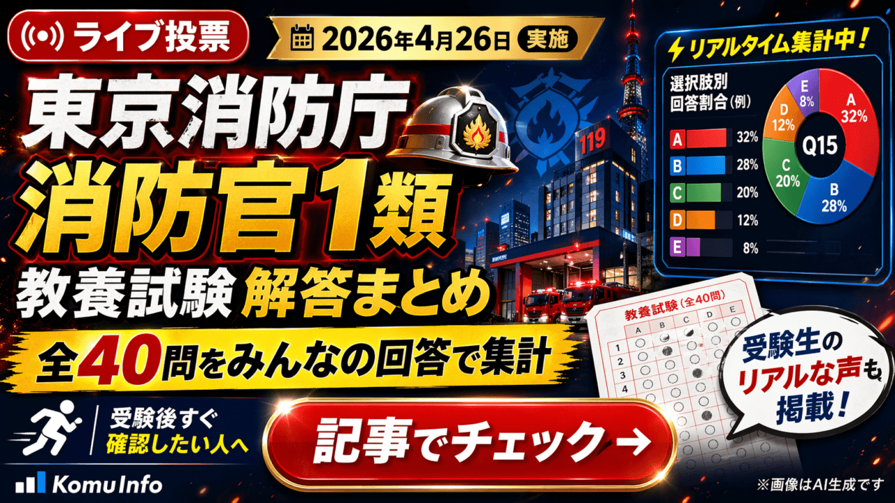 2026年4月26日(日)の令和8年度東京消防庁消防官Ⅰ類(教養試験方式)の教養試験を受験された皆さま、お疲れさまでした!
