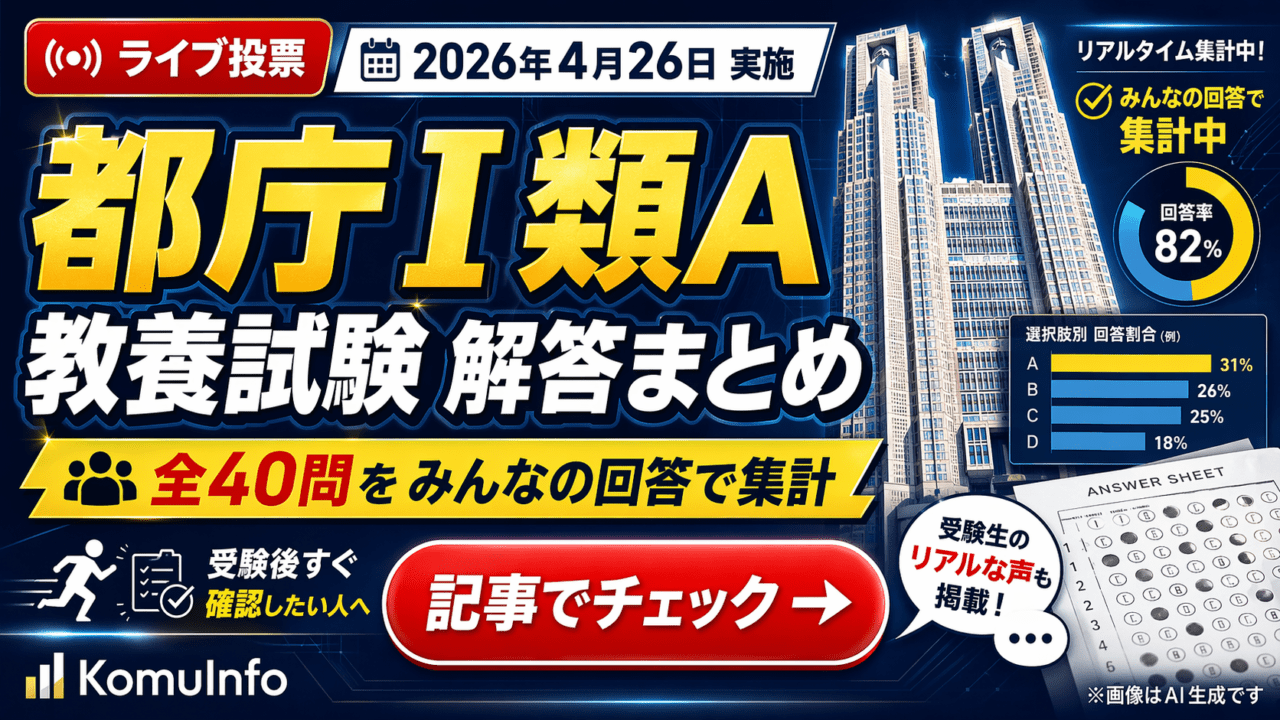2026年4月26日(日)の令和8年度東京都庁1類A採用試験の教養試験(技術)を受験された皆さま、お疲れさまでした!