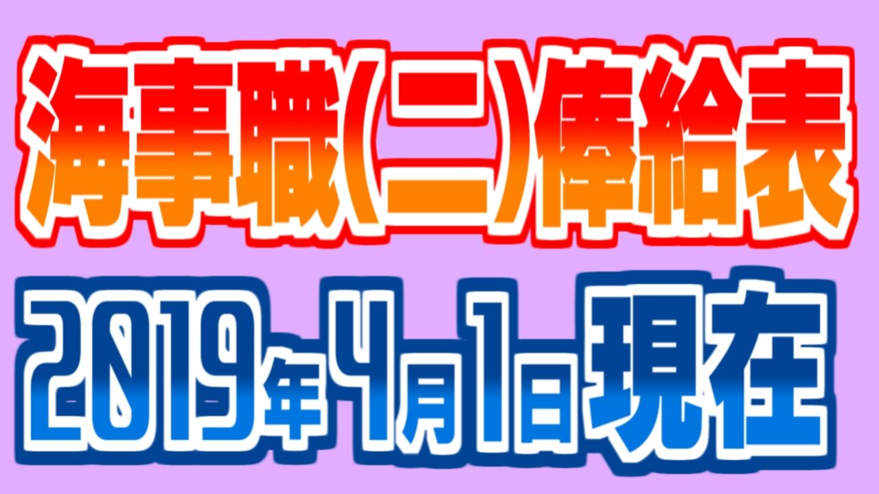 2019(平成31)年4月1日現在の国家公務員の海事職俸給表(二)は以下のとおりです。