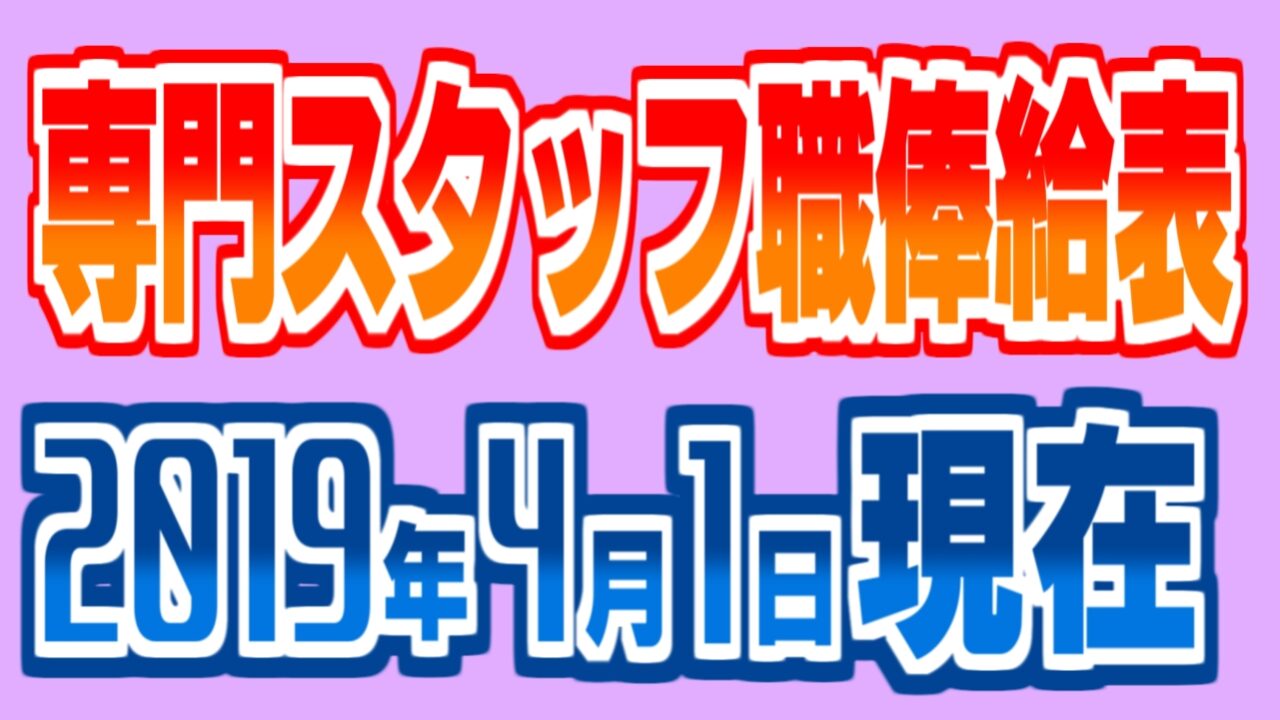 2019(平成31)年4月1日現在の国家公務員の専門スタッフ職俸給表は以下のとおりです。