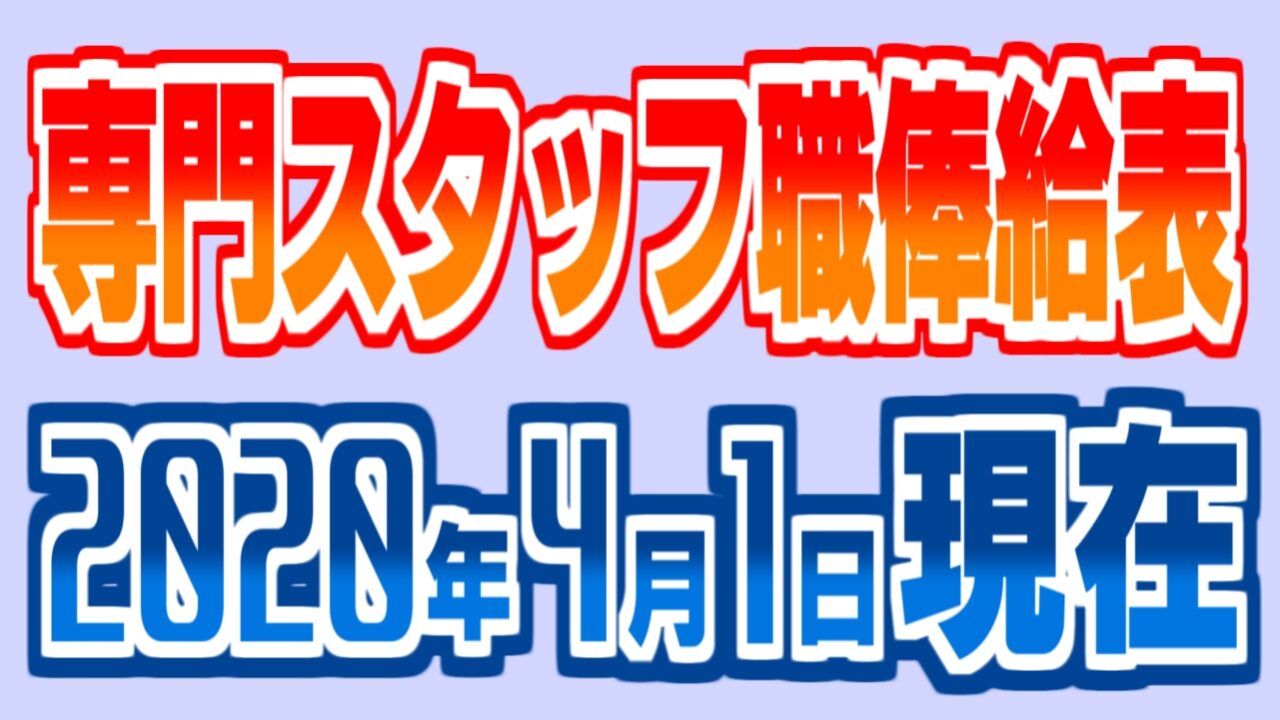 2020(令和2)年4月1日現在の国家公務員の専門スタッフ職俸給表は以下のとおりです。